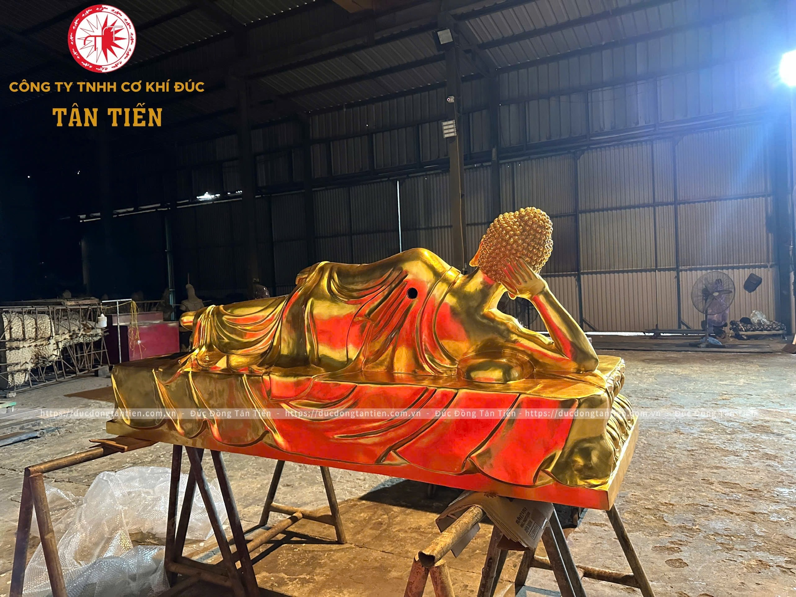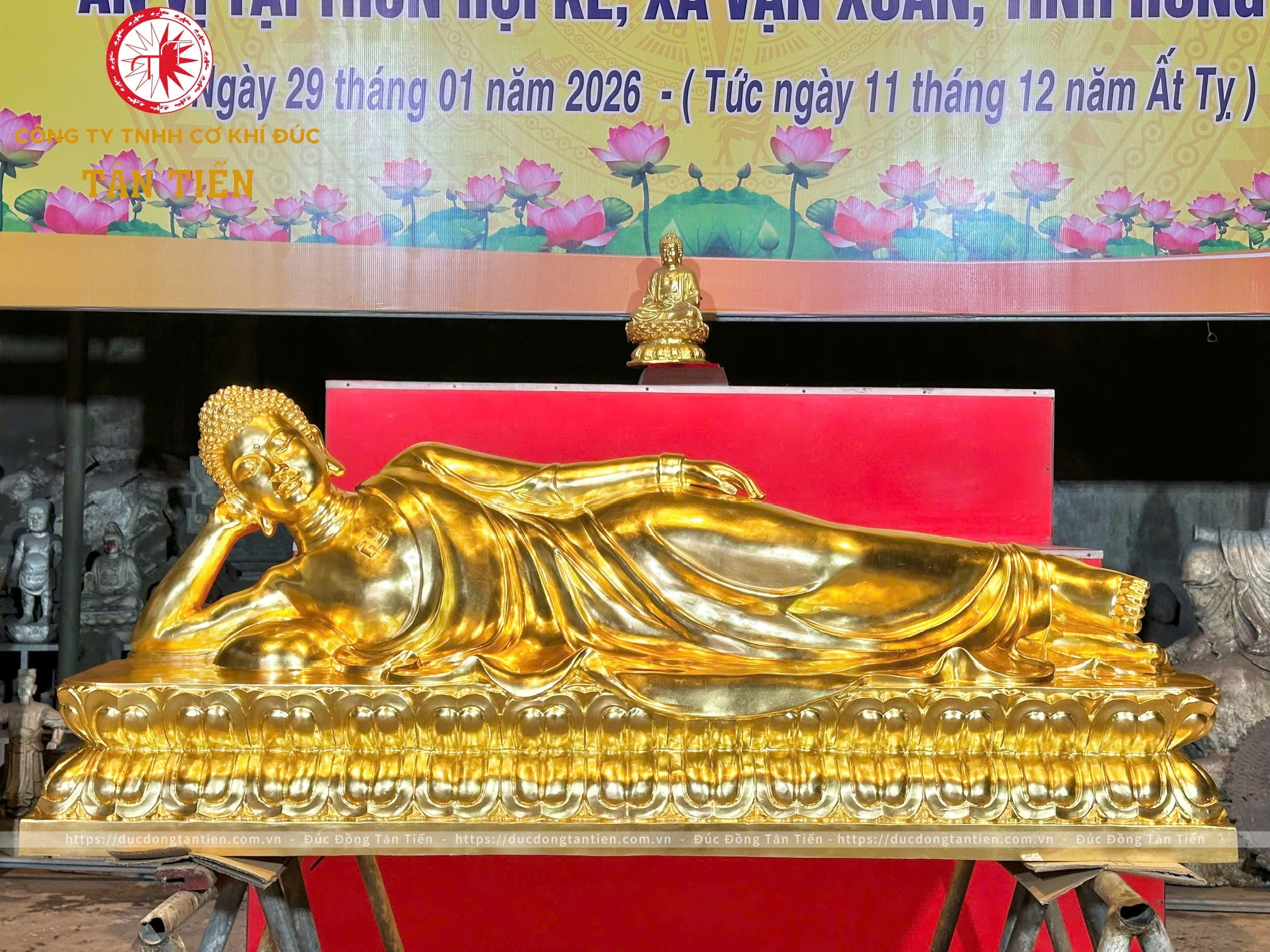 Tượng Phật Thích Ca Mâu Ni Nhập Niết Bàn bằng đồng dát vàng 24K đã được Đúc Đồng Tân Tiến hoàn thiện, bàn giao và an vị trang trọng tại chùa.